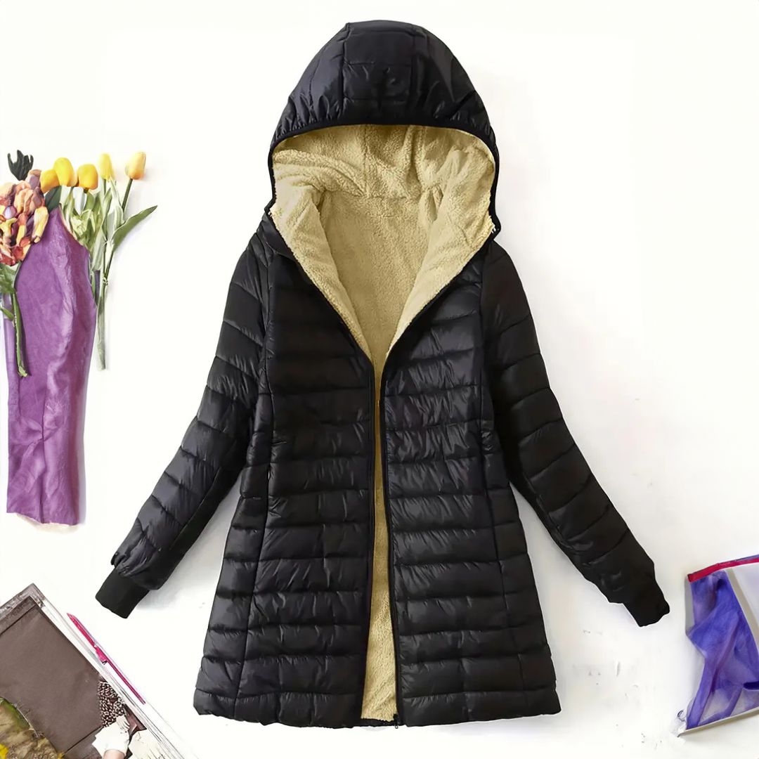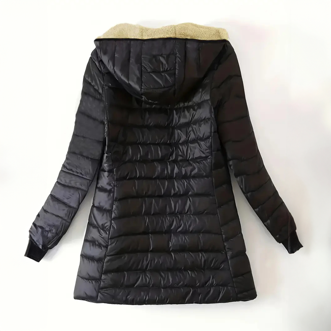 Rachelin pitkä taljakki pitää sinut lämpimänä ja kuivana koko talven. Takki on valmistettu vedenkestävästä materiaalista ja siinä on plyysivuori maksimaalista mukavuutta ja suojaa säätä vastaan. Se on täydellinen kylmään vuodenaikaan ja yhdistää toiminnallisuuden eleganttiin tyyliin. Älä odota - täydentä talvivaatetustasi tänään tällä pakollisella vaatteella!